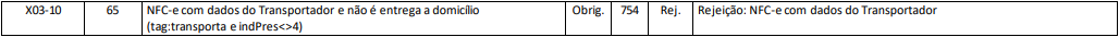 Rejeição 754: NFC-e com dados do Transportador (NFC-e)