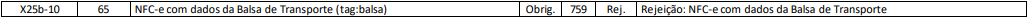 Rejeição 759: NFC-e com dados da Balsa de Transporte (NFC-e)