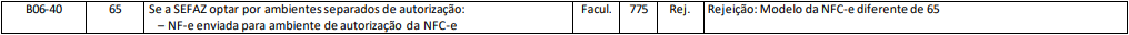 Rejeição 775: Modelo da NFC-e diferente de 65 (NFC-e)