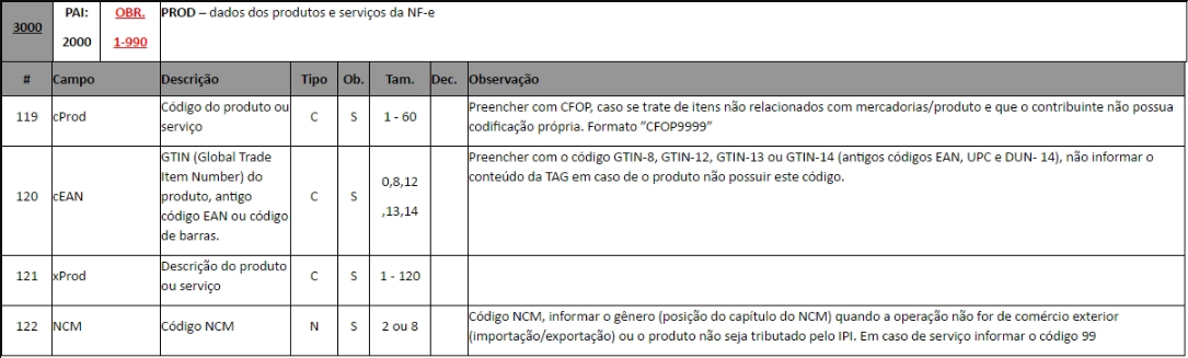 Fonte: ------> Anexo I - Leiaute e Regra de Validação - NF-e e NFC-e