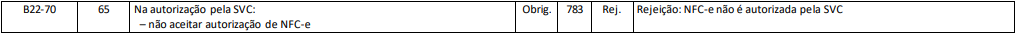 Rejeição 783: NFC-e não é autorizada pela SVC (NFC-e)