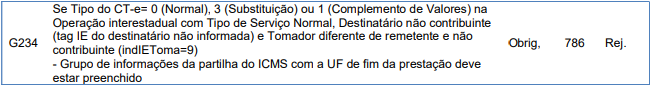 Rejeição 786: Grupo de informações da partilha com a UF de fim da prestação deve estar preenchido (CT-e)