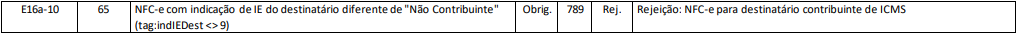 Rejeição 789: NFC-e para destinatário contribuinte de ICMS (NFC-e)