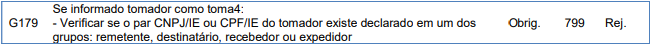 Rejeição 799: Identificação do tomador utilizada em outro papel no CT-e (CNPJ/CPF ou IE) (CT-e)