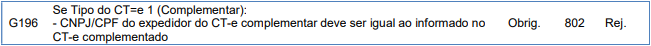 Rejeição 802: O CNPJ/CPF do expedidor do CT-e complementar deve ser igual ao informado no CT-e complementado (CT-e)