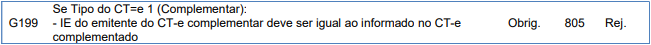 Rejeição 805: A IE do emitente do CT-e complementar deve ser igual ao informado no CT-e complementado (CT-e)