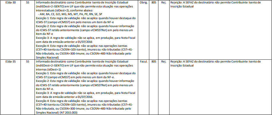 Rejeição 805: A SEFAZ do destinatário não permite Contribuinte Isento de Inscrição Estadual (NF-e)