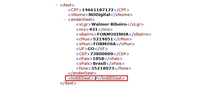 Para clientes que emitem o arquivo em TXT o campo DEST é referente a linha 2300 e o campo indIEDest está localizado no 4 º campo, conforme podemos visualizar abaixo nos manuais da NDD Tech.
