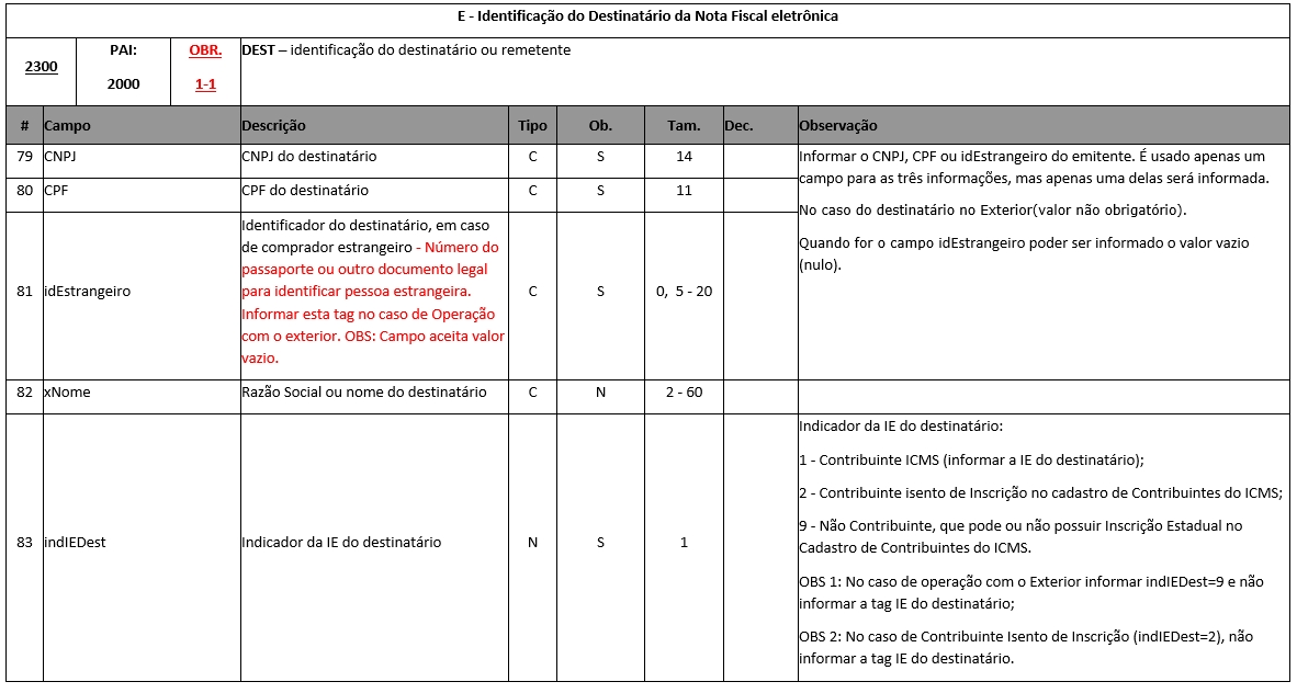 Fonte: ------> Anexo I - Leiaute e Regra de Validação - NF-e e NFC-e