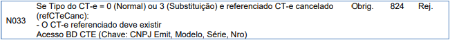 Rejeição 824: CT-e referenciado inexistente na base de dados da SEFAZ (CT-e)