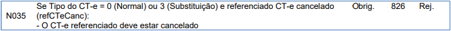 Rejeição 826: CT-e referenciado deve estar cancelado (CT-e)
