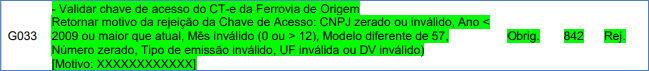 Rejeição 842: Chave de acesso do CT-e da Ferrovia de Origem inválida (CT-e)