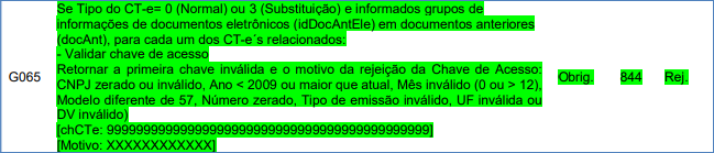 Essa rejeição ocorre ao emitir um CT-e (CT-e = 0 normal ou 3 substituição) e informado grupos de informações de documentos eletrônicos (idDocAntEle) em documentos anteriores (docAnt), para cada um dos CT-e’s relacionados: