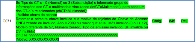 Rejeição 845: Chave de acesso do CT-e multimodal inválida (CT-e)