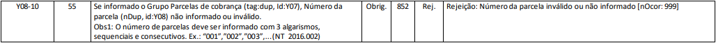 Rejeição 852: Número da parcela inválido ou não informado (NF-e)
