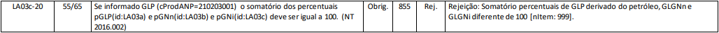 Rejeição 855: Somatório percentuais de GLP derivado do petróleo, GLGNn e GLGNi diferente de 100 (NFC-e)