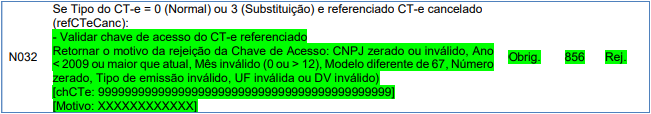 Rejeição 856: Chave de acesso do CT-e referenciado inválida (CT-e)