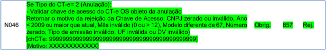 Rejeição 857: Chave de acesso do CT-e OS objeto da anulação inválida (CT-e)