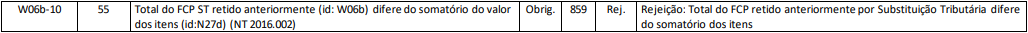 Rejeição 859: Total do FCP retido anteriormente por Substituição Tributária difere do somatório dos itens (NF-e)