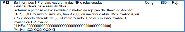 Retornar a primeira chave inválida e o motivo da rejeição da Chave de Acesso: