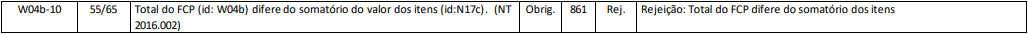 Rejeição 861: Total do FCP difere do somatório dos itens (NF-e)