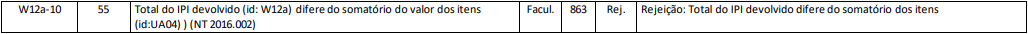 Rejeição 863: Total do IPI devolvido difere do somatório dos itens (NF-e)