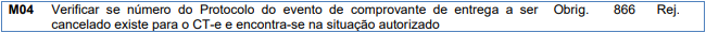 Rejeição 866: Protocolo do evento a ser cancelado não existe, não está associado ao CT-e ou já está cancelado (CT-e)