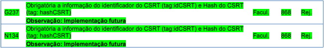 Rejeição 868: Obrigatória a informação do identificador do CSRT e do Hash do CSRT (CT-e)