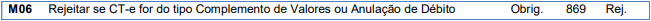 Rejeição 869: Evento não permitido para CT-e Complementar ou Anulação (CT-e)