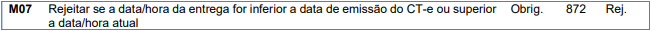 Rejeição 872: Data e hora da entrega inválida (CT-e)