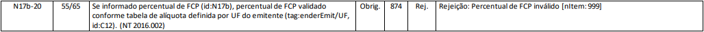 Rejeição 874: Percentual de FCP inválido (NFC-e)