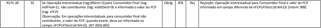 Rejeição 876: Operação interestadual para Consumidor Final e valor do FCP informado em campo diferente de vFCPUFDest (NF-e)