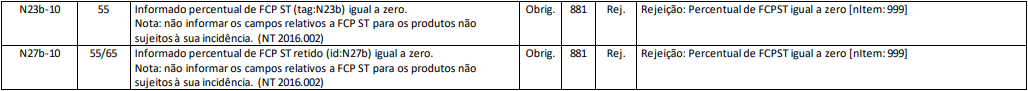 Rejeição 881: Percentual de FCP ST igual a zero (NF-e)