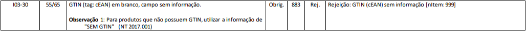 Rejeição 883: GTIN (cEAN) sem informação (NFC-e)