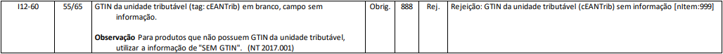 Rejeição 888: GTIN da unidade tributável (cEANTrib) sem informação (NF-e)