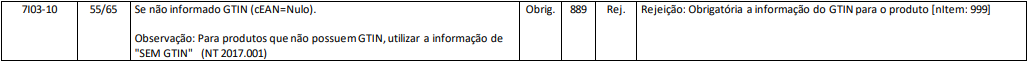 Rejeição 889: Obrigatória a informação do GTIN para o produto (NFC-e)