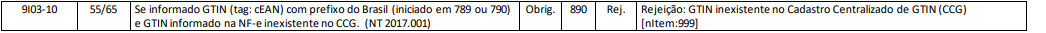 Rejeição 890: GTIN inexistente no Cadastro Centralizado de GTIN (CCG) (NF-e)