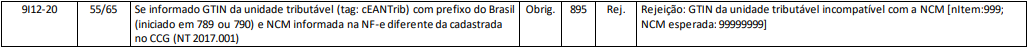 Rejeição 895: GTIN da unidade tributável incompatível com a NCM (NF-e)