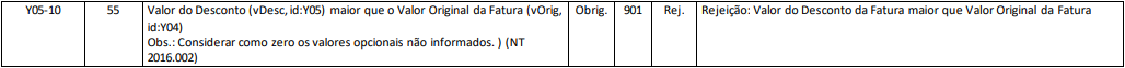 Rejeição 901: Valor do Desconto da Fatura maior que Valor Original da Fatura (NF-e)