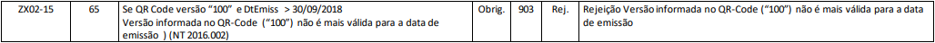 Rejeição 903: Versão informada no QR-Code (“100”) não é mais válida para a data de emissão (NFC-e)