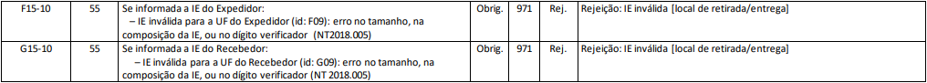 Rejeição 971: IE inválida [local de retirada/entrega] (NF-e)