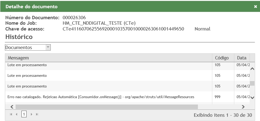 Rejeição 999: Erro não catalogado (informar a mensagem de erro capturado no tratamento da exceção) (CT-e)