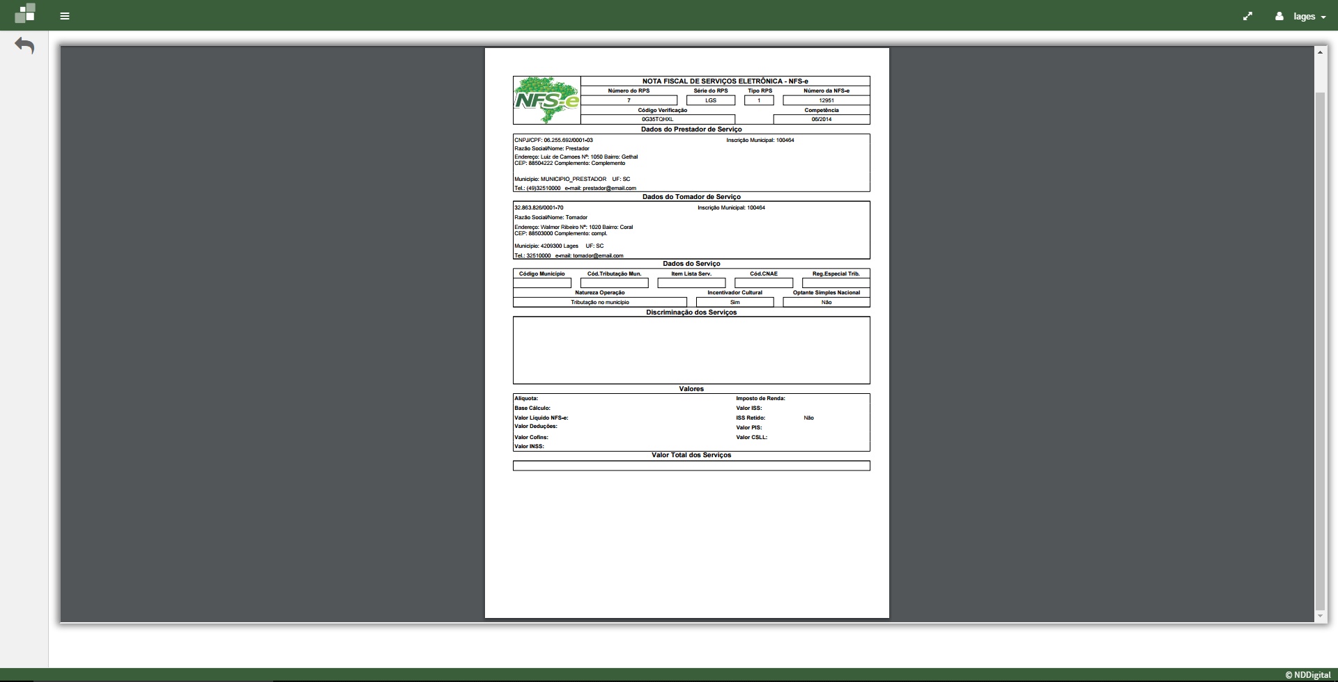 Código de verificação da NFS-e: Informação do código de verificação que foi retornado da prefeitura.