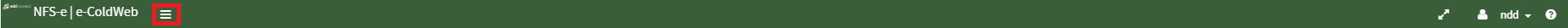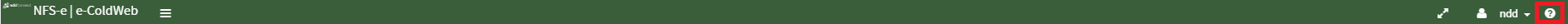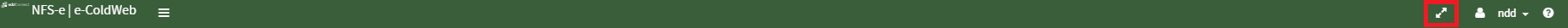 No cabeçalho do e-ColdWeb é possível realizar algumas ações através dos ícones, como maximizar e minimizar a barra lateral esquerda, página modo tela cheia, trocar de senha e fazer Logoff.