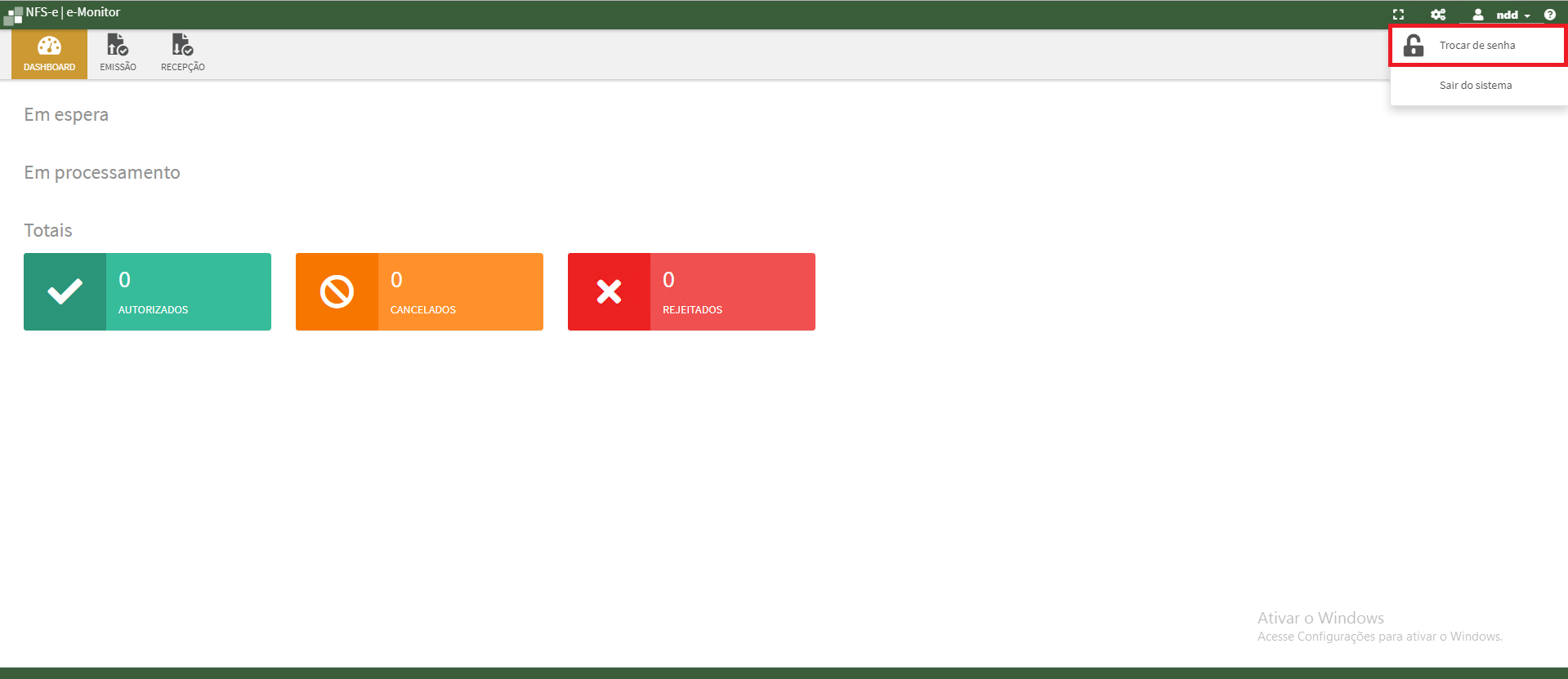 Trocar de senha através do portal NFS-e e-Monitor após realizar login (Local)